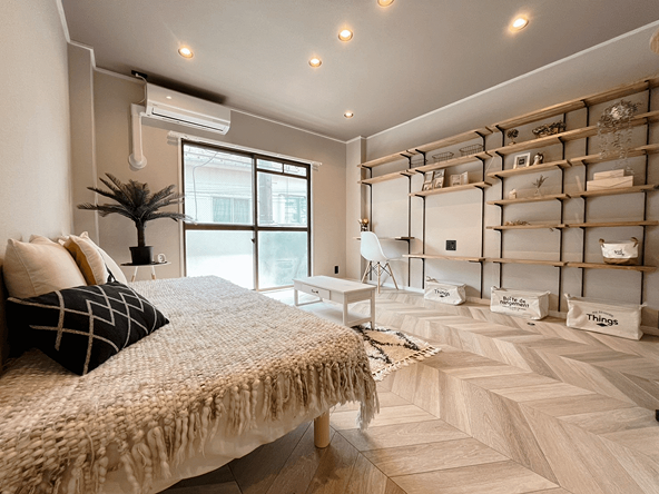 全18部屋中13部屋のリノベーションをはじめ、入居者が住みたくなる環境を徹底的に整備する事で年間家賃収入を約2.7倍にまで向上させました。画一的な部屋にリノベーションするのではなく、一部屋一部屋にコンセプトを持たせてデザインすることで大幅な賃料アップを達成しています。